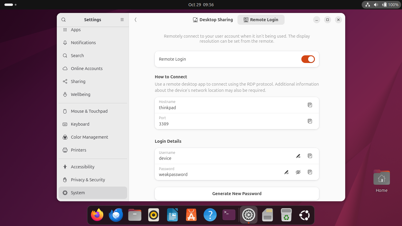 - Configure Remote Login (multi user, headless) and optionally Desktop Sharing (your current user) RDP certificates for GNOME Remote Desktop.