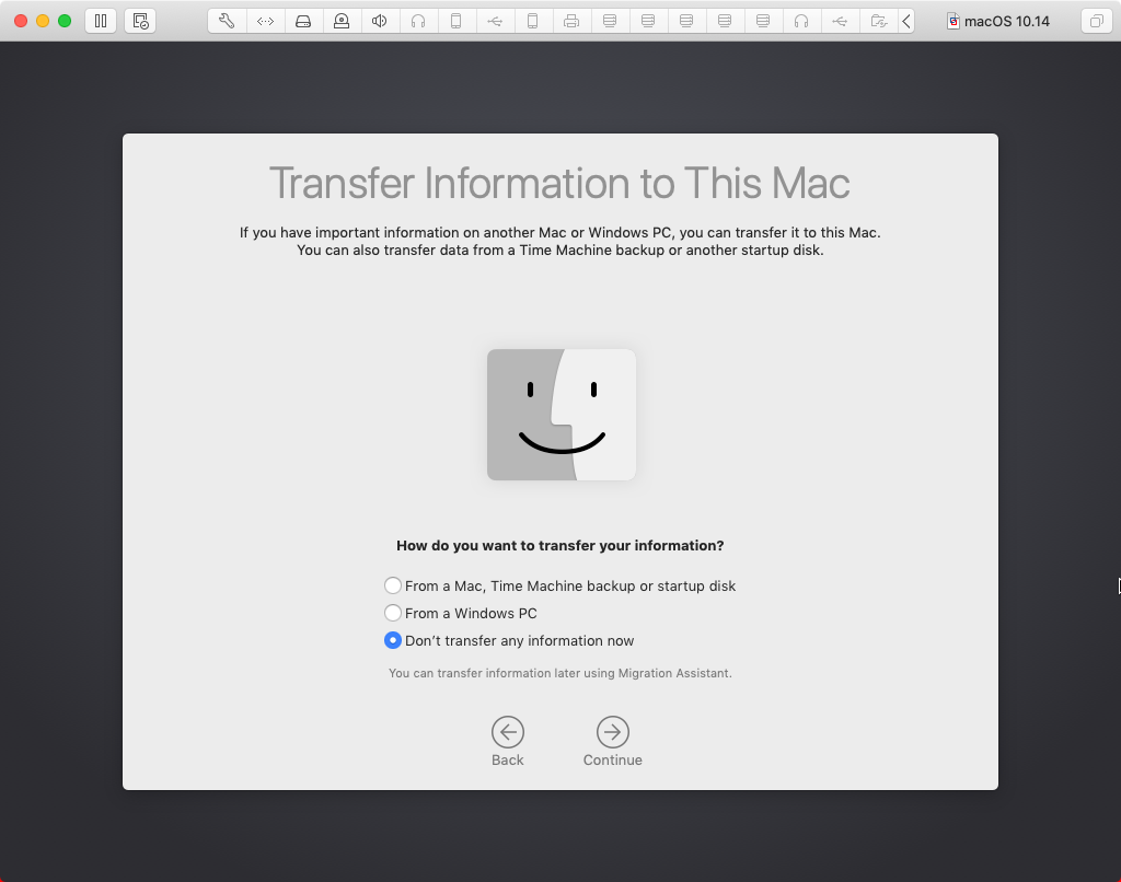 - VMware Fusion boot macOS Mojave once it completes setting up the virtual disk.